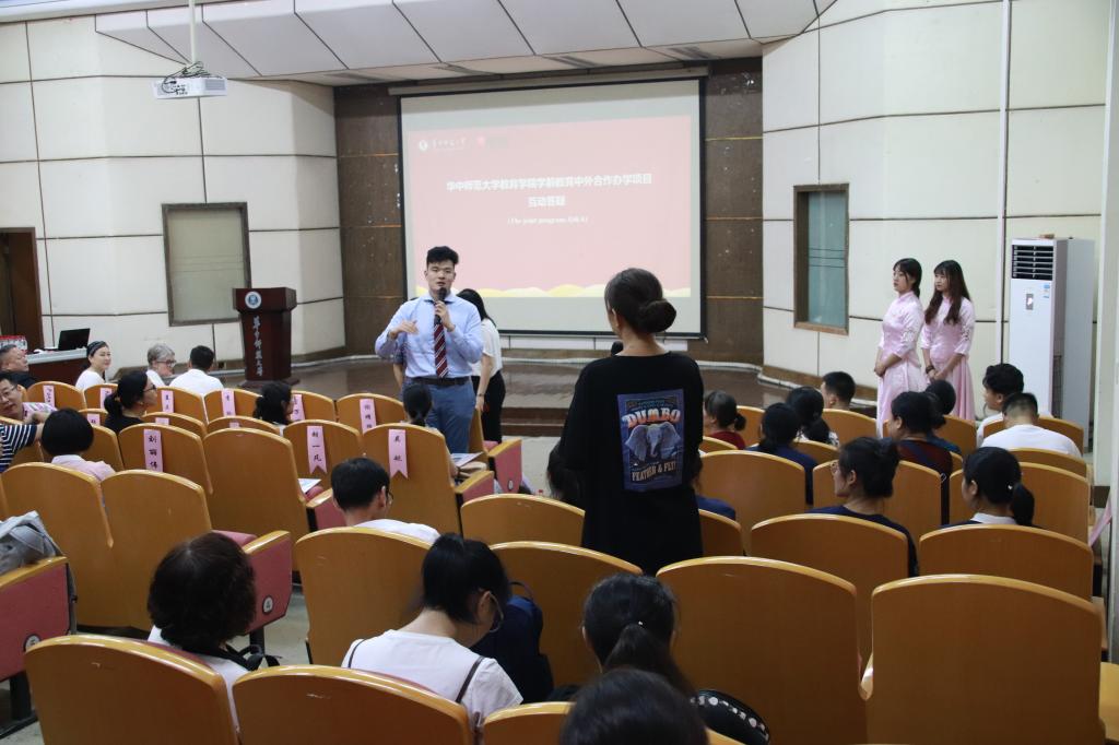 随后,夏立新上台致辞。他首先表达了对到场嘉宾的热烈欢迎及诚挚问候,并介绍了华中师范大学建校116周年以来的办学成就,并对我院学前教育专业中外合作项目作为我校教育改革创新的亮点地位表示肯定。他指出,“一所学校的发展,关键就是人才的培养,中外合作项目的开展就为学生提供了一次提升自己、塑造成才的契机”。