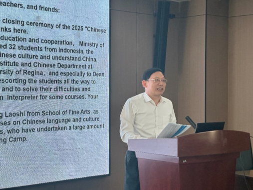 近日,我校2025“汉语桥“春令营武汉段活动已结束,4月26日上午,春令营结营仪式在文科科研楼举行,国际部副部长周波、美术学院副院长庄黎、印尼泗水国立大学孔院院长杨源、泗水国立大学孔院带队老师Ricky、Dinda以及29名来自印尼、英国和加拿大的学员出席。