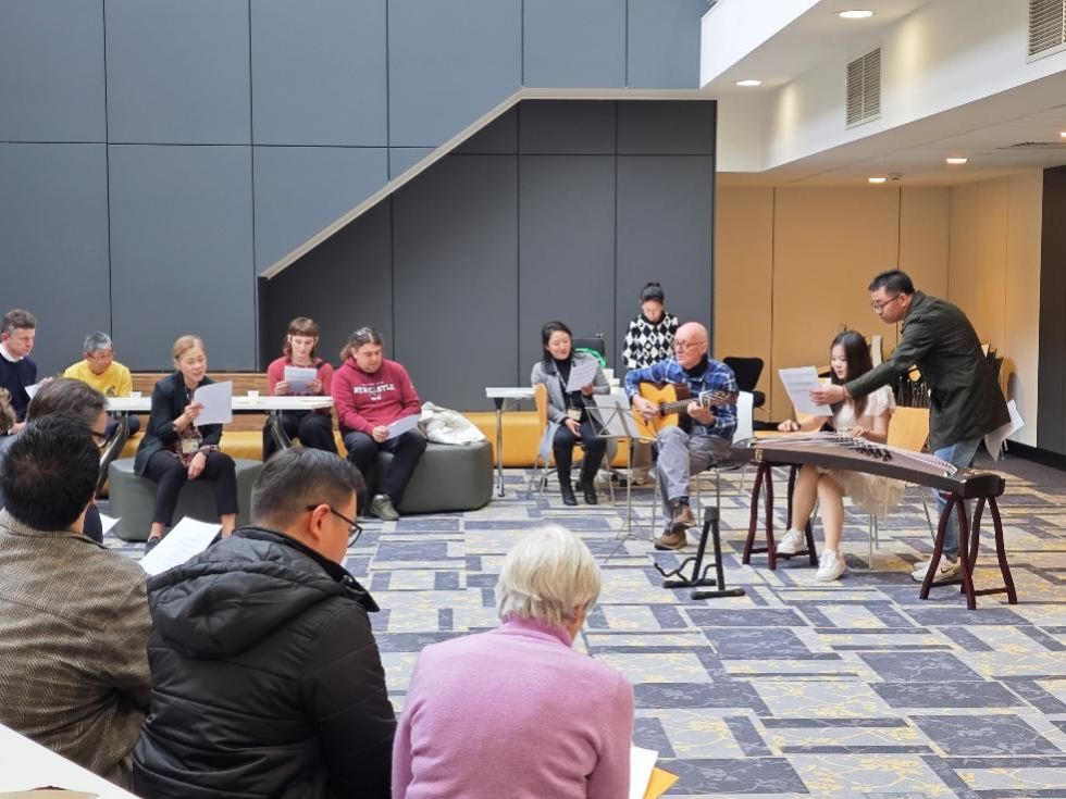 8月20日,孔院教师团在纽卡斯尔大学国际教育中心(IDC)进行语言和文化授课。上午9时,教师团与孔子学院主席在CH206举行会谈,双方就中文课程建设、文化项目合作等议题进行了深入交流,为进一步合作奠定了坚实基础。午间交流环节,古筝与吉他合奏、太极演练等节目将气氛推向高潮。下午,杨畅老师的茶文化课程让学生沉浸于中国传统的礼仪与韵味之中,其他四位志愿者则分别为其学生们进行了面对面语言授课课程,使得师生关系更加紧密,助力学生汉语水平的提高。