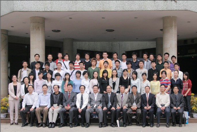 参加韩国语中心揭牌典礼的两校领导和首届“1+4”项目全体师生的合影