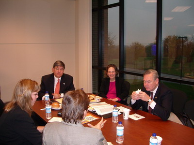 摩尔议员对孔子学院气氛活跃的汉语教学表现出极大兴趣。课间,他与班上的学员亲切交谈,详细询问了他们的学习情况。在他得知学员们都是出于对汉语和中国文化的强烈求知欲望,克服困难,挤出时间,利用每天早上上班之前、晚上下班之后的业余时间来学习汉语时,他表示了由衷的敬佩。议员先生还关切地询问了来自华师的中国教师的生活、工作情况。课后,摩尔议员也专门和孔子学院的中美双方教师及工作人员座谈,探讨如何进一步在大堪萨斯城地区,乃至全堪萨斯州推广与加强汉语教学的方式和途径,并表示要发挥他的政治与行政影响力,全力支持孔子学院的各项工作。