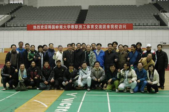 2008年2月24日至27日,韩国岭南大学教职员工体育交流团一行17人回访我校,并与我校教职员工开展体育交流活动。