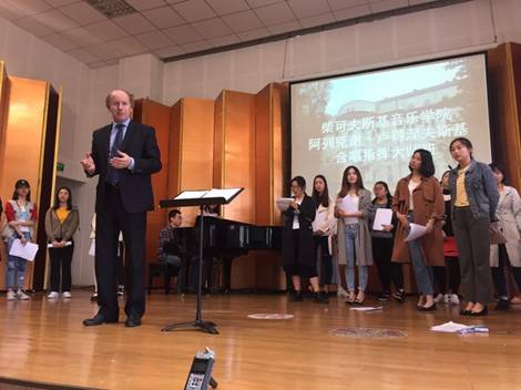 为期三天的大师班主要内容包括:专家专题讲座、合唱团训练实操、指挥技巧实操与提高等专题。阿列克谢教授系统讲授关于俄罗斯合唱艺术的发展脉络及现状,分享了最前沿的俄罗斯合唱音乐,介绍了俄罗斯音乐巨匠:柴可夫斯基、拉赫玛尼诺夫、索科洛夫、“强力五人团”等人的合唱作品。