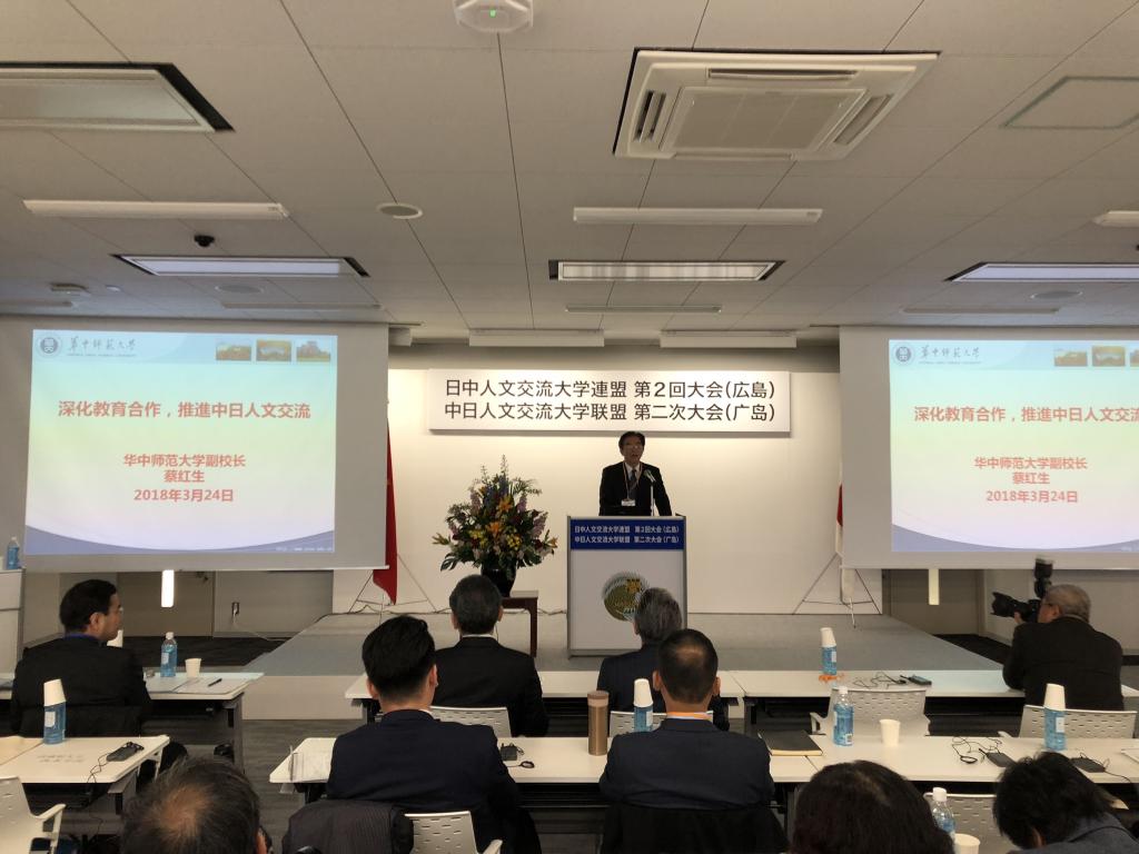 中日人文交流大学联盟第二次会议于24日在日本广岛大学举行。中国教育部部长陈宝生作为大会特邀嘉宾发表主旨演讲。中国驻大阪总领馆总领事李天然,日本文部省室长进藤和澄,日本广岛大学校长越智光夫,中日人文交流大学联盟常务主席白刚,来自30余所中日高校的校领导、专家学者代表等100余人出席大会。蔡红生在分会上做了题为“深化教育合作,推进中日人文交流”的主题发言,他介绍了我校对日教育交流的主要做法和“日本周”交流年活动成果,建议未来对日交流继续发挥“中日人文交流大学联盟”、“东亚教师教育大学联盟”平台作用,推进学校内涵式发展,聚焦人才培养模式创新和教师国际化能力建设,大力开展中日师生双向流动,共同致力于中日人文交流又好又快发展。