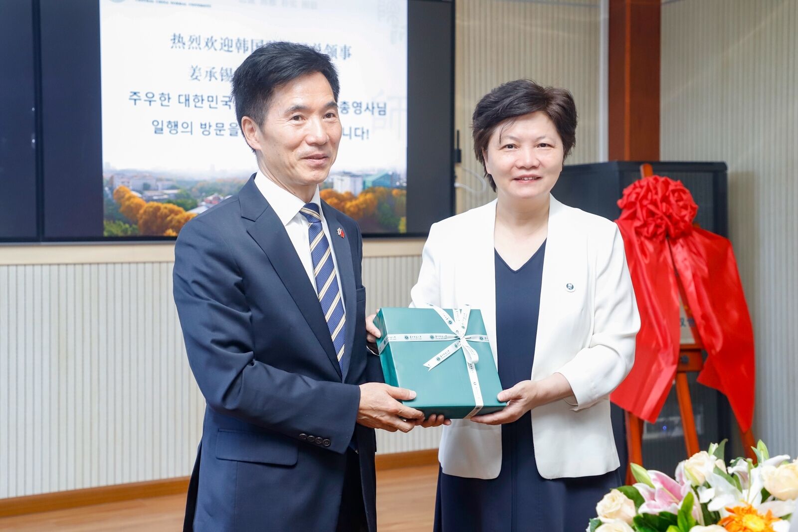 6月23日,韩国驻武汉总领事姜承锡一行来校访问,校长郝芳华、副校长任友洲会见了来宾,双方共同为武汉世宗学堂举行了揭牌仪式。国际合作与交流处、外国语学院相关负责人参加会见。