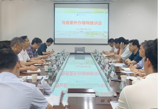 座谈会上,彭双阶副校长代表学校感谢省委外办多年来对学校外事工作的关心与支持。他表示,当前我校正处于新一轮“双一流”建设的关键阶段,“十四五”规划已启动实施,120周年校庆在即,学校国际化工作面临新的历史机遇,与此同时,受世纪疫情与百年变局交织叠加影响,国际化工作也面临诸多前所未有的困难与挑战;在新的历史条件下,学校国际化工作更加需要得到省委外办的支持与帮助,我校将一如既往主动融入全省外事工作全局,加快和扩大教育对外开放,不断推动国际化工作内涵式高质量发展,为服务地方经济社会发展作出更大贡献。