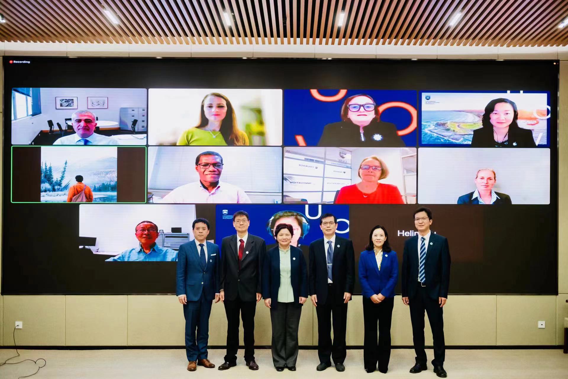 3月13日,我校与伍伦贡大学举行中外合作办学机构联合管理委员会会议,共谋两校合作事宜,开启双方合作新篇章。校长郝芳华、校党委副书记陈迪明,伍伦贡大学校长帕特里夏·戴维森(Patricia M. Davidson)、国际事务副校长威尔玛·维亚勒(Wilma Vialle)出席会议。