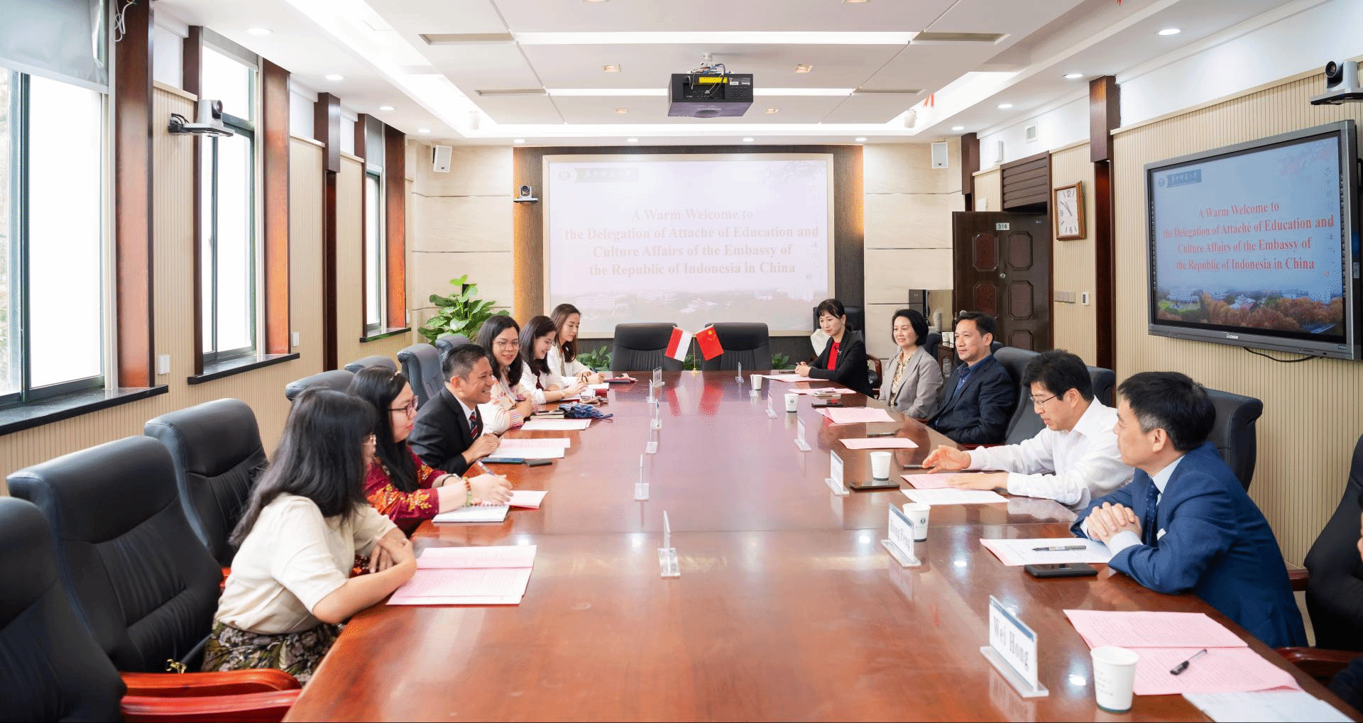 4月13日,印度尼西亚共和国驻华大使馆教育文化参赞Yudil Chatim(李健)一行来访我校,拜会校长郝芳华,并与副校长彭双阶在行政楼三楼会议室举行座谈。国际合作与交流处、教育学院、国际文化交流学院、中印尼人文交流研究中心等相关单位负责人参加。