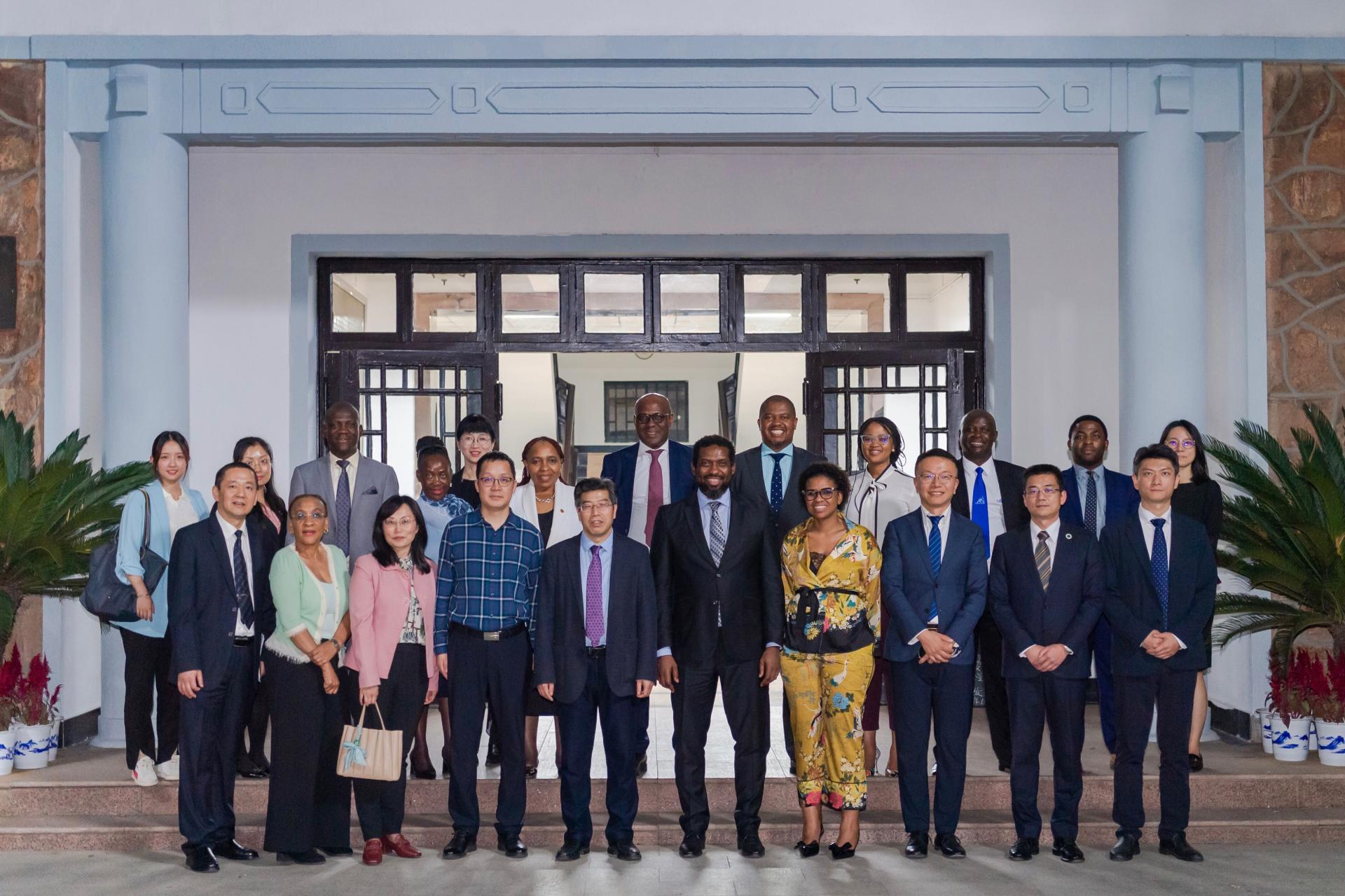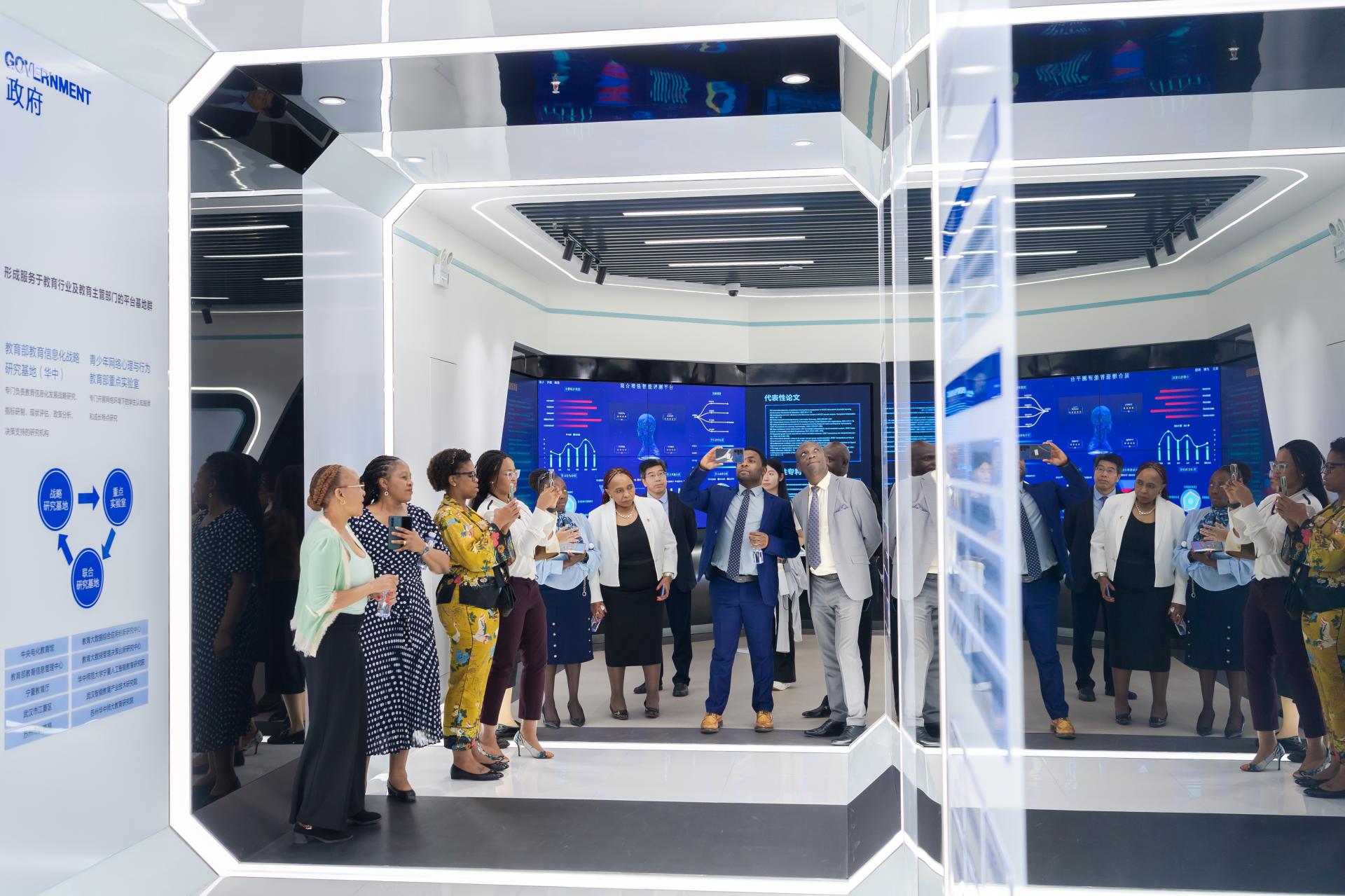 南非高等教育代表团由南非高等教育培训部官员、南非罗德斯大学、德班理工大学、西开普大学、纳尔逊·曼德拉大学、文达大学等高校校领导,以及多个领域的教育培训署官员组成。来访期间,代表团一行参观了我校智慧教室、教育大数据应用技术国家工程中心展厅和校史馆。中国教育国际交流协会港澳台办负责人金雷、高级项目官员杨仕琪陪同访问。