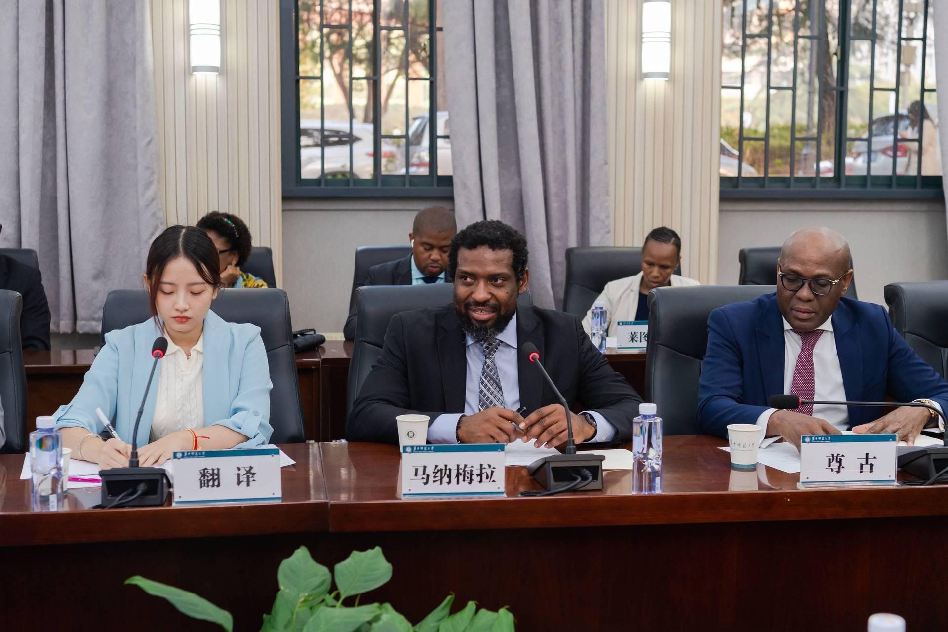 南非高等教育培训部副部长马纳梅拉感谢学校的热情接待,对我校建校120周年表示祝贺。他介绍了南非共和国基础教育、高等教育与职业教育的相关情况,分享了南非教育发展的宏伟愿景。他表示,南非将增强对学生的职业培训力度,并进一步加大对基础设施、人力资源和教学资源的投入,提升本国人才培养质量。2022年南非中小学骨干教师能力建设高级培训班课程设计用心,教学内容丰富,对南非教师的能力提升有切实帮助,期待在现有合作基础上,南非高校能够在教师教育、教育信息化等领域与我校达成更宽领域、更深层次的合作。