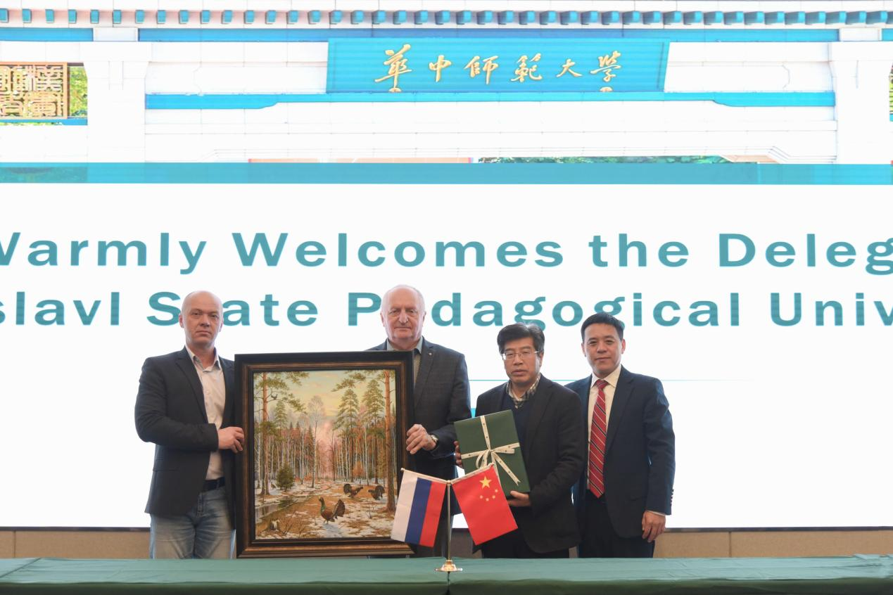 诺维科夫受米哈伊尔·瓦季莫维奇·格鲁兹杰夫校长委托,代表雅师大向我校赠送俄罗斯知名画家亚历山大·茹科夫画作《春日的松鸡》,祝贺我校建校120周年。他指出,两校均为具有悠久历史的百年老校,在所属国师范类大学中都占有重要地位。希望两校继续加强学术合作,鼓励我校教师在俄罗斯核心期刊上发表学术论文。