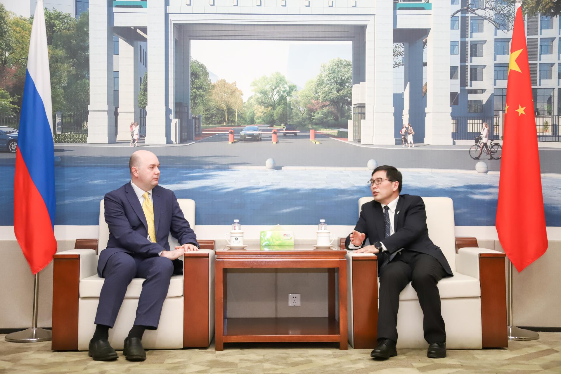 扎别林感谢我校的热情接待,高度赞扬我校在教师教育、教育数字化、人工智能教育以及基础教育领域取得的成就。他表示,将积极推广我校教育数字化方面的成果,并争取俄教育部的支持,与我校共同努力办好中文学校,让该校成为宣传和推广我校基础教育先进经验和人工智能教育成就的窗口,成为中俄基础教育合作领域的示范学校。