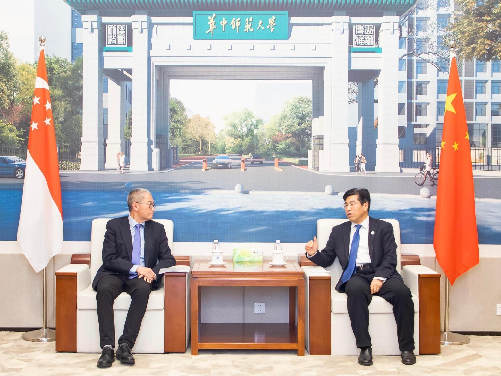 林杉表示,很荣幸受聘华中师范大学名誉教授。他回顾了与我校数统学院在学术研究、人才培养等方面的长期密切合作,认为南洋理工大学拥有该国唯一的国立教育学院,与我校教育教师领域合作前景广泛。他还分享了南洋理工大学在教育数字化领域的探索和实践,并表示,目前该校重点科研方向是“终身学习”,希望能为两校在此领域的合作贡献一己之力。