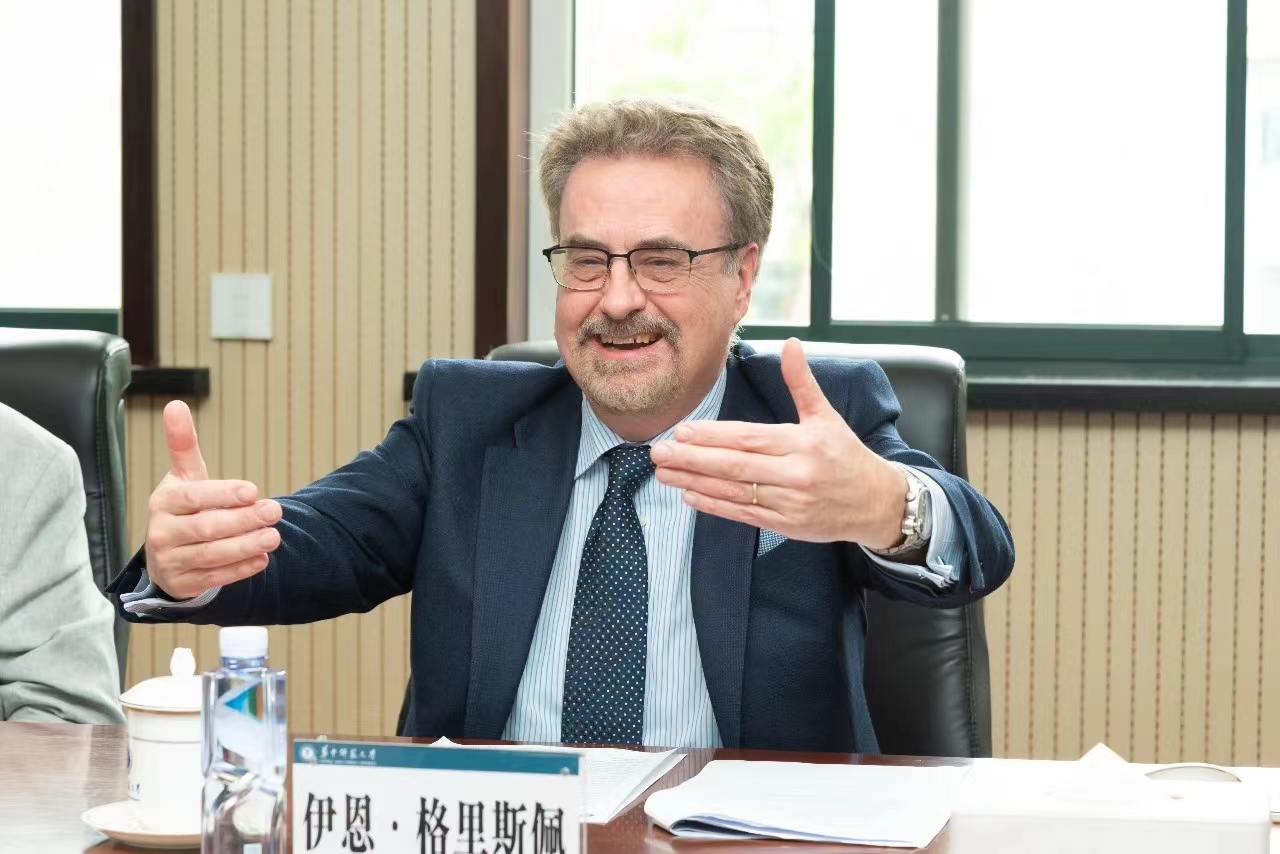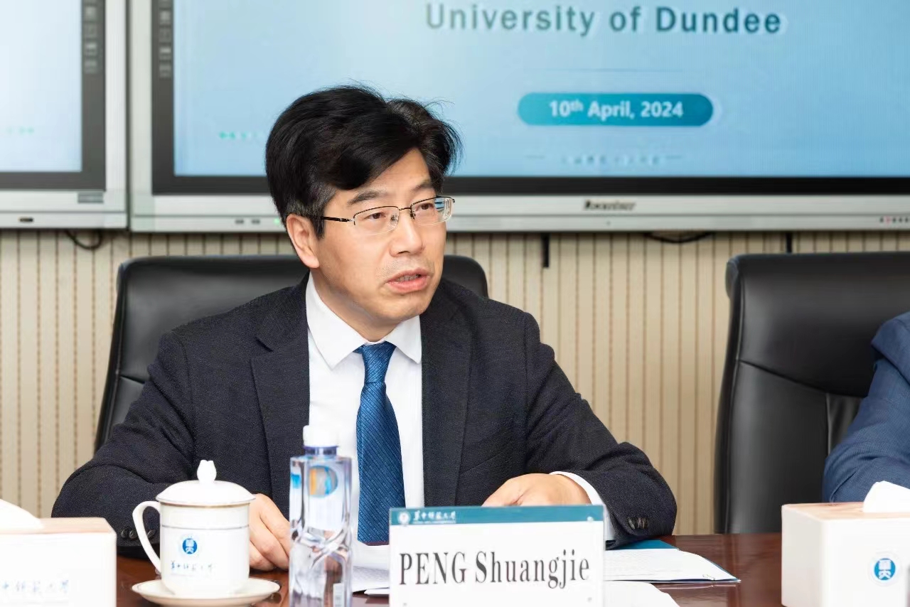 彭双阶对格里斯佩校长再次来访表示热烈欢迎,简要介绍了我校办学历史和发展状况,特别是学校坚持开放化办学、国际化发展以及推进教育数字化转型所取得的丰硕成果。他表示,我校与邓迪大学在生命科学学科领域已经建立了坚实的合作基础,希望两校能够能通过格里斯佩校长此次访问进一步拓展交流。他提出两校共建联合实验室、开展师生暑期交流、共同举办国际会议等合作倡议,并邀请格里斯佩校长等出席将在湖北举办的2025世界数字教育大会,加强双方在该领域的深度合作。