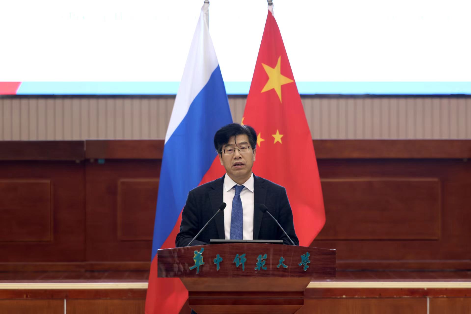 彭双阶在致辞中欢迎与会嘉宾莅临桂子山,共同擘画中俄高等教育领域合作与发展蓝图。他表示,华师坚持开放化办学和国际化发展,在对俄交流方面取得了显著成果。作为“中俄教育类高校联盟”和“长江-伏尔加河”高校联盟成员,我校已与20多所俄罗斯高校建立了交流关系并开展了务实合作,成功申报2项“促进与俄乌白国际合作培养项目”,在拔尖创新人才培养方面积累了丰富经验。学校开设了俄语专业,成立了俄语成语研究中心、中俄农村比较研究中心等机构,数学与统计学学院成功入选中俄数学中心合作基地,有效推动了我校与俄罗斯高校在教学与科研方面的深度融合,也为促进两国人文交流和民心相通做出了积极贡献。他呼吁中俄两国高校进一步深化人才培养、联合科研和共同举办国际会议等合作,推动两国教育事业蓬勃发展,友谊之树根深叶茂。